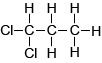 1,2-dichloorpopaan klopt ook niet. Zo zou de CH3-groep 2 piekjes moeten geven. Evenals de H-atomen van de CH2-groep. 1,2-dichloorpropaan kan het dus niet zijn. |