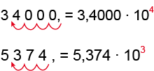 Voor getallen groter dan 1, verschuift de komma naar links, Voor elke stap naar links wordt de macht van 10 één groter.