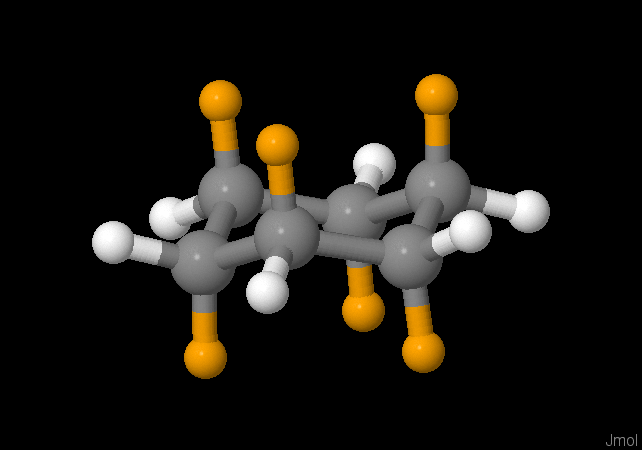 De stoel- en de bootconformatie. In bijgaande animatie zie je hoe de ruimtelijke vorm kan veranderen in een boot of in een stoel. Met een beetje fantasie is dat te zien. De stoel-vorm is het meest stabiel. De atomen zijn dan het verst bij elkaar vandaan.