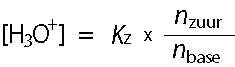 In het geval van een zwak zuur splitsen er maar weinig protonen af. De zuurconcentratie [HB] is daardoor bijna even groot als de concentratie opgelost zuur: cz. We mogen daarom in de evenwichtsvoorwaarde [HB] vervangen door de opgeloste hoeveelheid zuur: cz. De formule verandert dan. [H3O+] en dus pH kun je nu eenvoudig berekenen met: